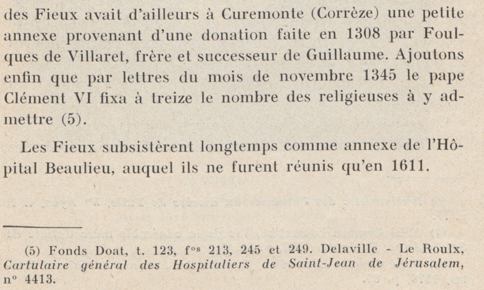 Note (texte de fin de la page précédente) : "Un établissement plus important dépendait également de l’hôpital Beaulieu. En décembre 1295, Barascon de Thé-"