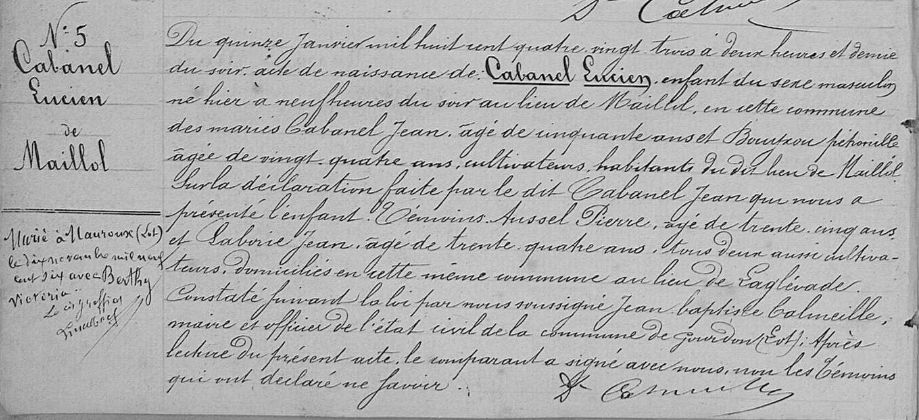 - Le 10 novembre 1906, il épouse à Mauroux Victoria Berthy.