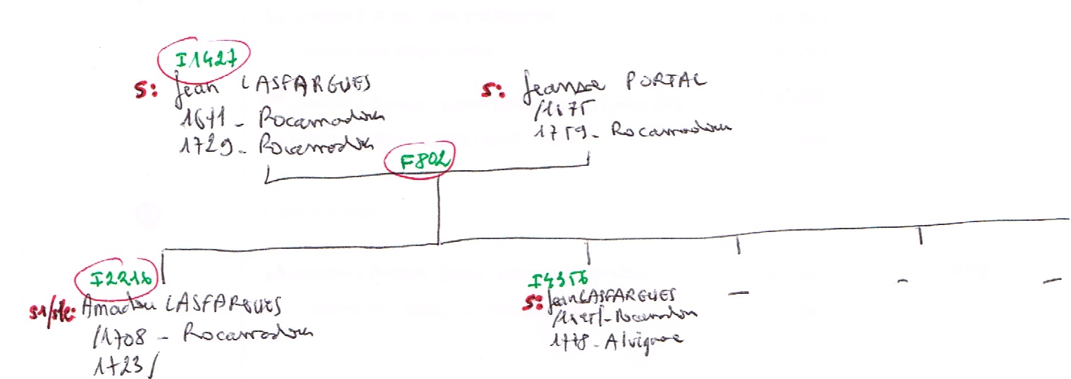 Dans la famille (famille 802) de Jeanne PORTAL (2218) et de Jean LASFARGUES (1427) manquent encore deux autres enfants, Toinette n°1 et Jean le benjamin pour chacun desquels il faut refaire cette procédure. Un petit peu de pain sur la planche mais, en étant méticuleux et bien organisé, cela ne pose pas de gros problème Et puis, Toinette n°1 et Jean le benjamin ne sont peut-être pas déjà répertoriéés dans la bases des MaLiBeLe MaLiBeLe La généalogie telle que je la vois à travers l’arbre généalogique de mes petits enfants. : il est beaucoup plus facile de simplement ajouter des personnes nouvelles.