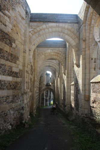 Nous sommes installés pas très loin de l’itinéraire prévu mais nous devons toutefois parcourir cinq kilomètres supplémentaires pour le rejoindre. Nous allons d’abord visiter Beaumont-le-Roger où nous sommes presque les seuls visiteurs du prieuré aux ruines pourtant impressionnantes.