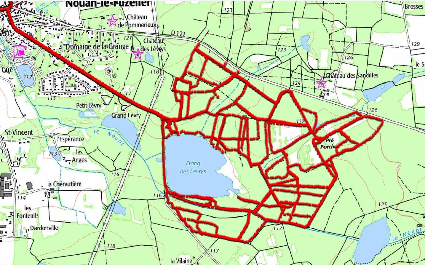 Je poursuis par un deuxième tour aux limites du domaine. Pour l’instant, je ne tiens pas compte des impasses qui mènent quasiment toutes à la route de Nouan-le-Fuzelier à Pierrefitte-sur-Sauldre. Je navigue avec mes connaissances du domaine (j’ai un peu l’impression d’être un expert mais à un échelon plus que modeste).