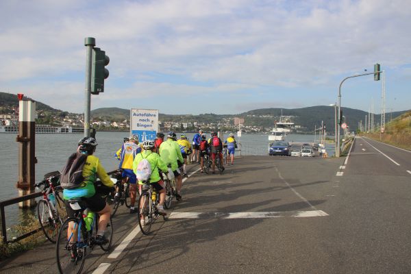 Départ par le bac une fois de plusRoland BouatNous ne partons qu’à neuf heures aujourd’hui et, tout de suite, nous traversons une nouvelle fois le Rhin par un bac pour rejoindre Bingen.