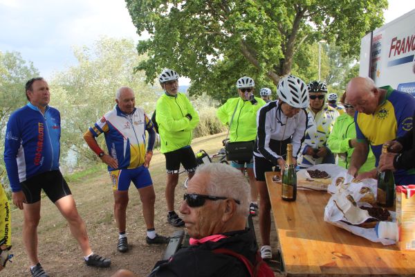 Tiens, ce ne serait pas l’anniversaire de Jean-Michel, par hasard...Roland BouatAprès la traversée de Coblence (Koblenz), un "goûter" a été mis en place par nos guides, Geroges et Alfred, en l’honneur de l’anniversaire de Jean-Michel, l’orléanais.