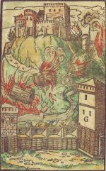Gravure du XVIe siècle représentant l’attaque de la tour romaine avec des tonneaux enflammésToutefois, malgré la difficulté qu’il y avait à puiser de l’eau sous les flèches et les javelots romains, la défense gauloise restait ferme. Les Romains arrivèrent cependant enfin, grâce à aux conduits souterrains qu’ils avaient creusé, à détourner l’eau de la source. Le coup fut rude, car cette source ne tarissait jamais et les Gaulois comprirent que les dieux leur étaient désormais défavorables. C’était fini, il n’y avait plus ni eau, ni espoir à Uxellodunum.