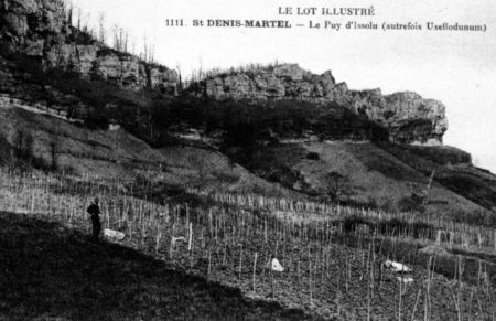 Le Puy d’Issolud (photo Amis d’Uxellodunum)La chose n’est pas surprenante : depuis la Révolution Française, le développement du nationalisme tendait à toucher la plupart des aspects de la vie sociale et les sciences historiques tout particulièrement ; en effet, l’exaltation de la nation passait naturellement par celle de ses ancêtres héroïques et l’image des derniers défenseurs d’Uxellodunum luttant jusqu’à la dernière extrémité pour leur liberté collait totalement à l’esprit de l’époque. Le courage des grenadiers de la Garde à Waterloo et celui des légionnaires à Camerone avaient ainsi des racines qui, passant par la bataille de Poitiers et la résistance désespérée du roi Jean II, naissaient en Quercy avec la farouche résolution des Gaulois aux mains coupées… D’ailleurs, l’admiration si française pour les guerriers se battant courageusement et énergiquement jusqu’au bout sans aucun espoir de victoire fut ensuite confortée, grâce à la guerre de 1870, par de nombreux exemples de résistances désespérées mais magnifiques face au sort contraire : les cuirassiers de Reichshoffen, les coloniaux de Bazeilles, etc.… Le débat sur la localisation d’Uxellodunum n’était donc pas, dès le départ, une simple question historique, mais une affaire regardant la nation française, héritière de la nation gauloise, toute entière. Dans ce cadre, il était normal que toutes les communes pouvant potentiellement être identifiées comme l’antique Uxellodunum cherchent à se prévaloir de cette ascendance prestigieuse.