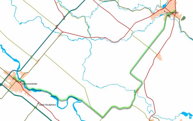 - Montréal (boulevard Levesque) > Promenade du Vieux Port > embarcadère (traversier vers Longueil) > Boucherville > Varennes > Verchères > Contrecoeur > Sorel-Tracy