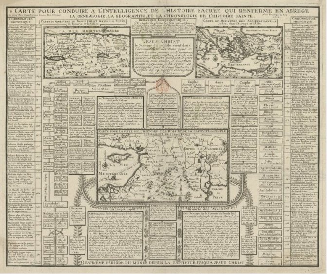 Carte pour conduire à l’intelligence de l’histoire sacrée qui renferme en abrégé, la généalogie, la géographie, et la chronologie de l’histoire sainte : Quatrième période du monde depuis la captivité jusqu’à Jésus Christ, Roussel Claude, 1723 => Consultation en ligne, inGallica ou BNF, publié le 29/10/2012, consulté le 31/03/2016