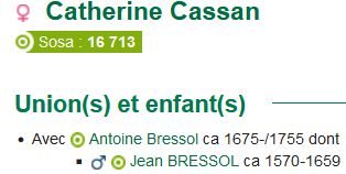 Deux nouveaux ancêtres donc : les parents de Pétronille "Peyronne" LACASSAIGNE : Géraud LACASSAIGNE et Margueritte SALVAT. Il ne reste plus qu’à démêler les liens de parenté.