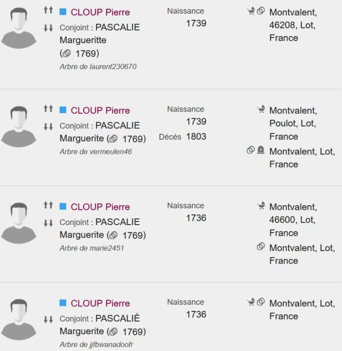 Peut-être que, dans le logiciel, il existe une liste des erreurs probables.Les gestionnaires de l’arbre généalogique devraient donc le consulter de temps à autre et corriger à minima les erreurs les plus flagrantes comme ici.