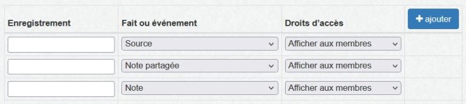 - Dans le champ "Fait ou événement", sélectionner "Note" dans le menu déroulant