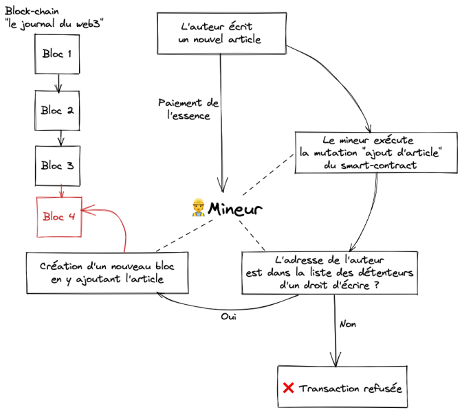 Le web version 3 s’appuie sur une nouvelle technologie : la block-chain. Pour faire simple, c’est un algorithme qui met de la confiance dans les échanges entre inconnus, en supposant que certains parmi eux ont des intentions malveillantes. Avec la block-chain, il n’est plus nécessaire de faire confiance à une entité centralisée (Google, Amazon, Twitter, Crédit Agricole, ...) pour utiliser des services en ligne. Le web 3, c’est la décentralisation.
