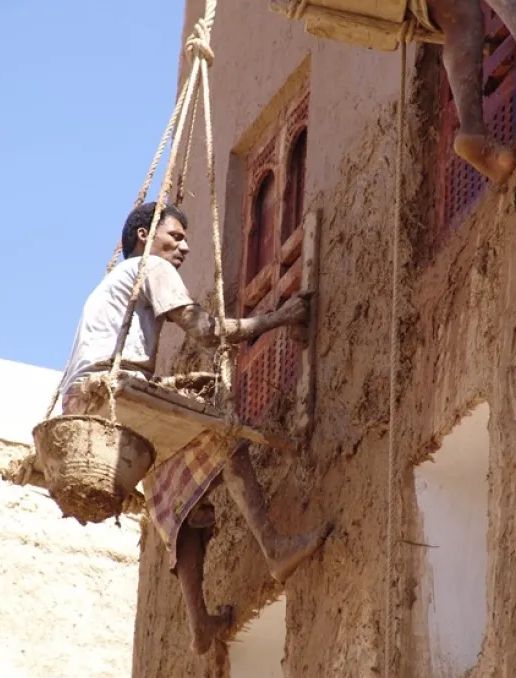 La fragilité de la brique de boue signifie que les gratte-ciel vieux de 500 ans ont besoin d’un entretien régulier. Par conséquent, de la boue fraîche et du calcaire doivent être appliqués périodiquement. Cela sert à renouveler et à protéger les murs des éléments et des parasites.