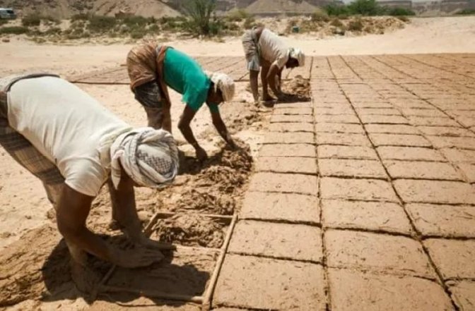 Le mur de briques est bon marché, durable et facilement disponible. La ville a été construite à partir du sol fertile entourant la ville. Aujourd’hui, un mélange de terre, de foin et d’eau est encore façonné en briques et laissé cuire au soleil pendant des jours.
