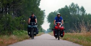 Leur objectif avec ce voyage à vélo ? Repenser le tourisme face aux défis climatiques en promouvant un mode de voyage plus durable. Pendant un an, ils parcourront l’Europe à vélo, débutant leur périple en février 2025. Julie, spécialiste du tourisme durable à l’Ademe, et Gaël, professeur de (...) -- 03_Julie-et-Gaël-du-projet-Tournesol-300x154.jpg, Bourse du Jeune voyageur – Julie et Gaël sur la route du projet « Tournesol », Cyclotourisme Mag, la bourse du Jeune voyageur de la Fédération française de cyclotourisme, Polarsteps, Bourse du jeune voyageur international à vélo