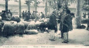 Mais le marché que je préférais était celui des moutons : on y trouvait des agneaux engraissés pour ravir les papilles des amateurs, des brebis en petits nombre pour compléter un troupeau, quelques béliers pour les échanges et éviter la consanguinité et des agnelles (très jeunes brebis) pour le renouvellement du troupeau de brebis. Les barrières de bois étaient en place très tôt le matin et il fallait venir avant l’ouverture officielle pour transférer les animaux des bétaillères vers les parcs. Venait ensuite l’attente et le passage des maquignons qui repéraient les animaux qui les intéressaient en attendant la cloche qu allait lancer les marchandages. Il y avait bien, déjà, quelques échanges et quelques réservations (on n’avait pas, ainsi, trop l’impression d’enfreindre la loi). Avec le tintement aigrelet, une vague semblait parcourir le foirail avec les acheteurs qui allaient rapidement vers les emplacements repérés. Ces premiers marchandages étaient rapides, précis et se concluaient très vite par la poignée de main qui valait tous les contrats. Je préférais les échanges suivants avec les atermoiements des uns et des autres : cela faisait partie de la négociation. Il y avait aussi ces petites compensations quasiment indétectables mais dont tout le monde connaissait l’existence : un prix annoncé à voix haute qui n’était pas le prix payé mais qui tentait de faire bouger le cours du marché, une promesse qui serait tenue bien sûr mais qui permettait à l’un ou à l’autre d’être un peu plus serein pour les jours ou les semaines à venir, de faux accrochages verbaux qui ne masquaient qu’un désaccord provisoire, souvent de quelques centimes.