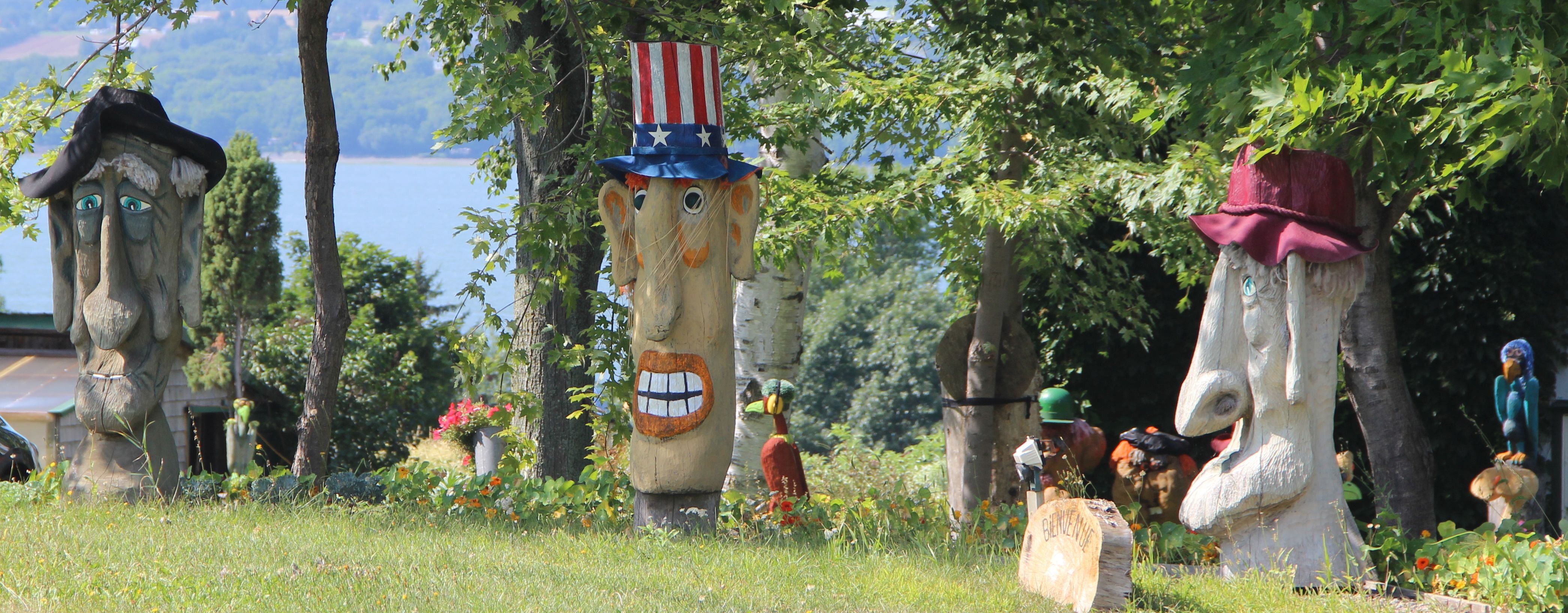 Il y avait bien quelques sculptures sur bois ici ou là mais voilà qu’au bord de la route, il est possible d’en voir de plus en plus.