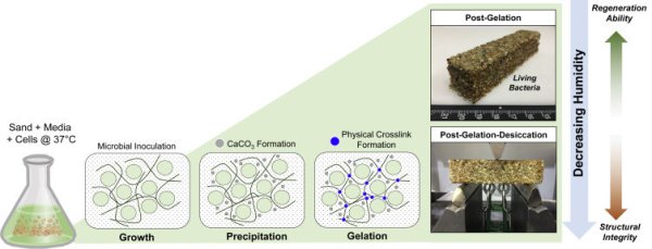 Qu’obtenez-vous si vous mélangez du sable, des bactéries et de la lumière du soleil ? Un matériau de construction auto-répliqué qui tire le CO2 tout droit de l’atmosphère, selon les ingénieurs de recherche d’une université aux États-Unis.