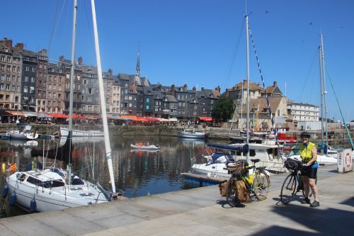 A l’arrivée à Honfleur, nous souhaitions faire une photo sur la plage avec l’estuaire de la Seine à la place de la mer et peut-être la ville du Havre en dernier plan. Celle près de laquelle nous sommes passés et à laquelle nous avons tenté d’accéder étaient bien trop bondée et cette foule sans "masque anti-covid" nous a fait abandonner ce projet. La peur de la pandémie est toujours là même si nous sommes vaccinés depuis plus de quinze jours.