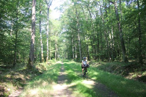 Le retour sur nos pas nous fera découvrir que notre itinéraire vélo est prévu sur ... un chemin à peine blanc ! Si la randonneuse passe sans trop de difficulté, le vélo route aux roues de sept cents et aux pneus un peu trop maigres bénéficiera de la pratique régulière du vélo tout terrain de sa pilote. Nous aurons ainsi deux passages sur des chemins un peu accidentés à la limite du gravel.