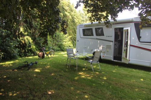 Après notre parcours à vélo vers Deauville et Honfleur, nous avons repris le camping-car puisque nous devons avoir quitté le parking avant demain matin sept heures ! Après quelques petites recherches dans les bourgs proches du parcours prévu pour demain mardi, nous nous installons sur le parking de l’école d’un village tranquille : le Pin. Tellement tranquille que nous découvrons vite le manège de deux probables habitants du lieu. Peut-être sommes-nous une "curiosité" ? L’un est à vélo et l’autre est en voiture : ils font le tour du parking, nous regardent en passant et repartent. Ils sont venus s’assurer que nous ne sommes que des touristes ! Ils pensent certainement que nous ne sommes pas des gens du voyage alors que notre objectif est essentiellement le voyage. Voyage à travers la France que nous visitons à vélo en emmenant notre "maison" avec nous.