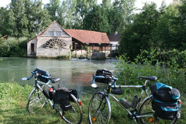 Toutes les photos ont une histoire : Lors d’une randonnée à vélo, au détour d’un chemin a surgi ce moulin dans son écrin un peu idyllique. Comme le thème du concours photo régional du cyclotourisme était "les moulins" cette année, la photo s’imposait. Comme le règlement impose la présence d’un vélo, nous avons mis nos deux randonneuses. C’était quelque part en France lors d’une sortie sur la journée.