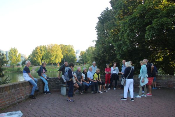 Et puis, voici la ville ralliée dans les délais. Une guide nous a emmené à pied visiter les points principaux de la ville en commençant par la cathédrale et le commissariat de police (si, si... la police est bien hébergée dans un bâtiment historique), puis en continuant vers les anciens quartiers (tanneurs, pêcheurs...) avec, entre autres, la maison penchée, la tour penchée (non, tout n’est tout de même pas penché par là)... et en finissant par la mairie aux superbes fresques sur les murs extérieurs.