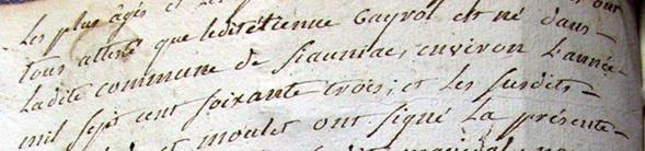 Le 23 fructidor an 3, parmi les actes de naissance, figure celui de Étienne Cayrol. La particularité est qu’il est sans doute né en Corrèze à Siauniac en 1763. Cette demande a été faite par sa soeur Marianne (accompagnée par son mari Joseph Fauré) parce que leurs parents habitent Carennac depuis la naissance d’Étienne et que celui-ci a besoin de prouver son âge. Étienne est menuisier à Paris.