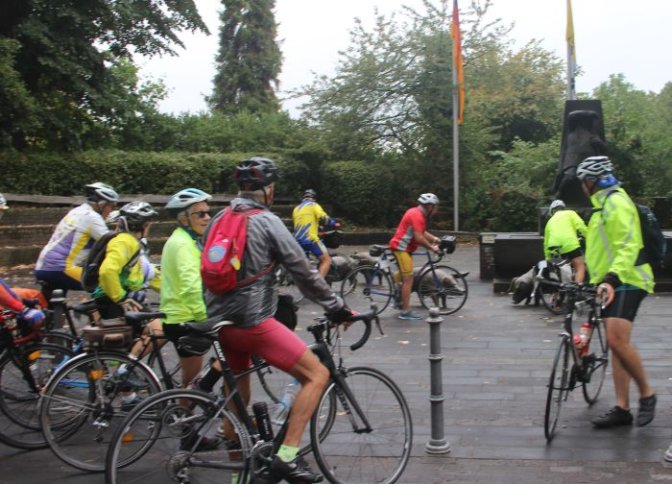 Speyer nous verra charger les vélos dans les camionnettes parce que nous allons prendre le trin jusqu’à Rüdesheim via Manheim. Il paraît que la région n’est pas du tout agréable pour le tourisme à vélo : ce serait une zone industrielle tout du long sans grand intérêt.