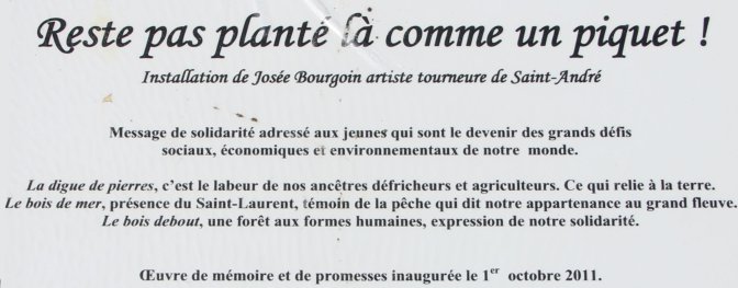 Macine agricole pour ... (?)Roland BouatUn arrêt à Rivière-Ouelle permet de découvrir pour les plus curieux, ce qui constitue la base des grandes fermes rencontrées :les concessions qui ne sont initialement que de grandes bandes de terrains, sans doute envahis par une flore particulière qu’il a fallu défricher.