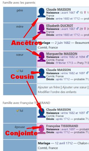 - Affecter aux cousins ou cousines, l’icône correspondante ainsi qu’aux conjoints.