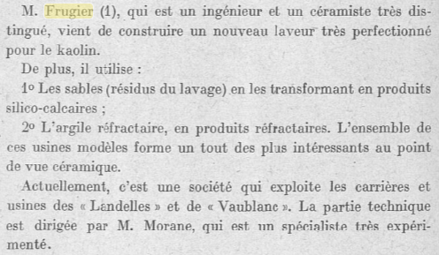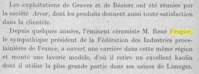 Réné Frugier était un entrepreneur insatiable. Il voulait maitriser toute la chaine de production de sa porcelaine. Pour cela il a acheté des carrières de kaolin dans les Cotes d’Armor et dans la région de Béziers.
