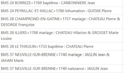 - Les prénoms et noms de famille d’un ancêtre sont soulignés.