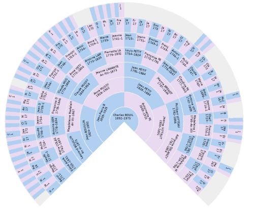 Le site MaLiBeLe comme tout arbre généalogique peut afficher la généalogie sous forme d’un arbre (il existe d’ailleurs plusieurs modèles disponibles grâce à webtrees).