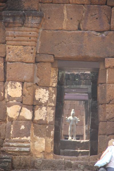 La statue au bout de l’alignement des portes du temple en ruines semble prête à venir nous rejoindre.