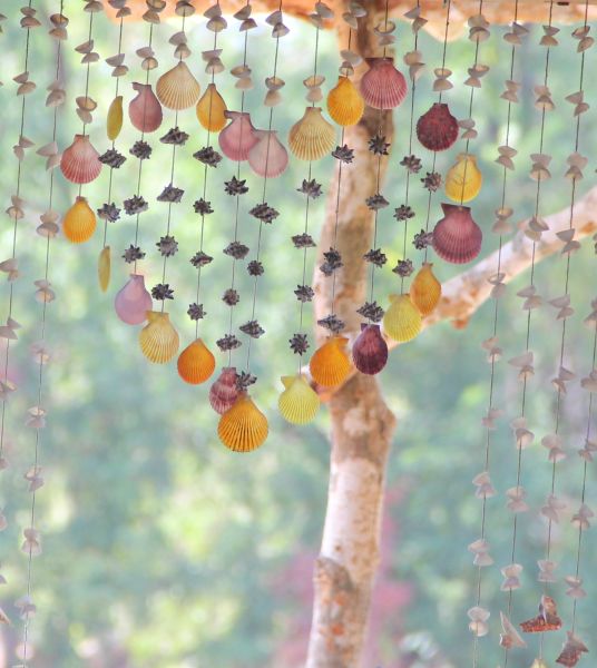 Ce n’est qu’un rideau de porte fait de fils, probablement pour limiter le passage des insectes volants mais les fils servent de support comme un mobile.