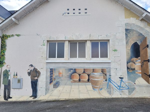 A Faverolles-sur-Cher, le peintre chargé de décorer les murs a usé des éléments présents pour davantage de réalisme jusqu’à installer les bouteilles sur le coffret du compteur EDF par exemple.