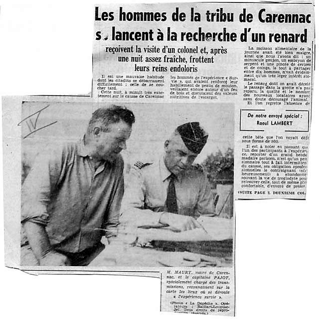 Commentaire de Pascal Girac : "Sur l’article, la photo de Ferdinand Maury. Les officiers étaient installés chez LAVEYSSIERE où la table était excellente avec Odette au piano... Ils me promenaient en jeep pendant que les pauvres bidasses mangeaient ce qu’ils trouvaient... dans le causse en plein été d’où la photo de l’officier avec le toubib et sa sacoche !!!"