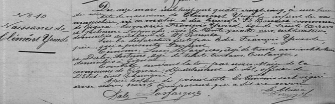 Clément YRONDE est né le 11 mars 1885 à Saint-Boonnet sur la commune de Gignac près de Souillac dans le Lot. Il est le fiils de François Yronde et de Julienne Lespinasse de Gignac. Au conseil de révision, Clément est cultivateur à Gignac.