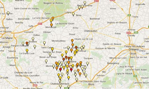 Petit rappel : plus. c’est rouge, plus il y a d’événements (rouge de 47 à 116, orange foncé de 19 à 46, orange de 7 à 18, jaune de 3 à 6 et jaune clair de 1 à 2).