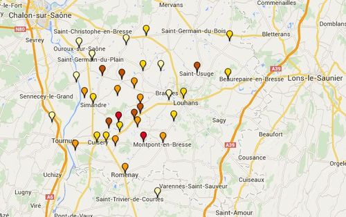 La zone est un peu plus large et les évènements un peu plus éparpillés. Il faut aussi noter que, si je n’habite pas très loin de cette zone, j’en suis complètement excentré (complètement en bas à droite).