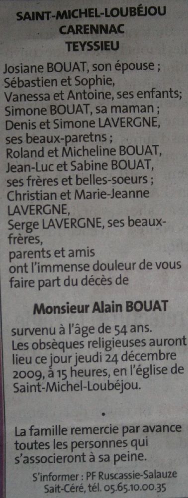 Alain Bouat, un homme simplement juste.dimanche 3 janvier 2010