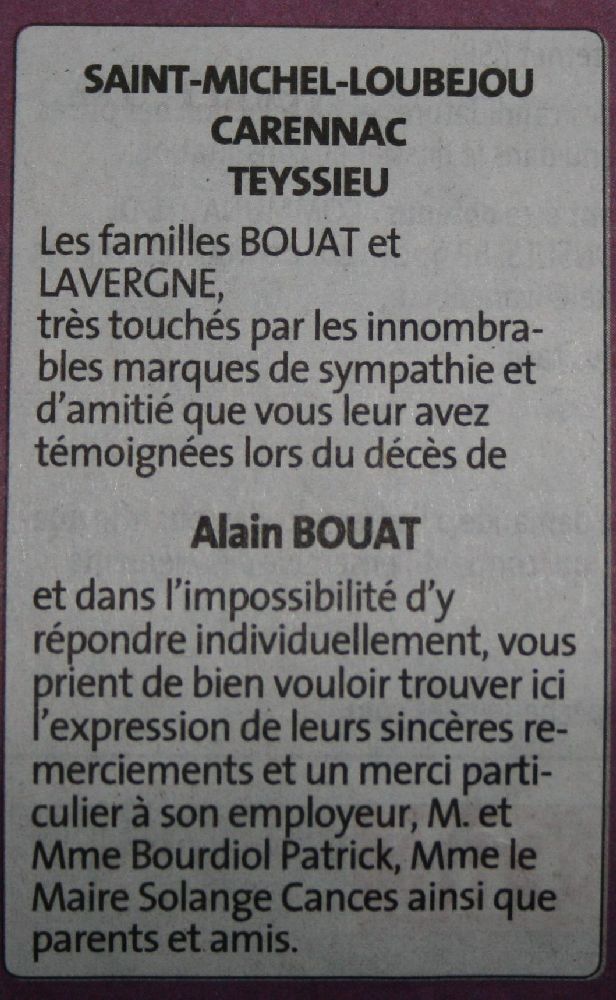 Cela fait 7 ans que Papa nous quittait à l’hôpital de Brive. Cela fait quinze jours qu’Alain nous quittait à l’hôpital de Brive.