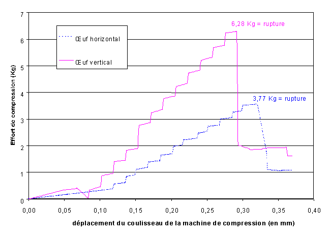 Comparer la résistance de la coquille de l’œuf sous un effort horizontal et vertical.Test de COMPRESSION