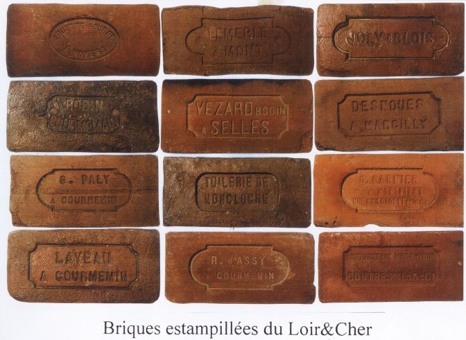 On pourrait écrire des pages entières pour évoquer ces briques : celles estampillées « AP » (Administration pénitentiaire) fabriquées par les bagnards de Cayenne, ou celles trouvées à Gièvres, fabriquées aux USA et importées en France par l’armée américaine pendant la première guerre mondiale pour la construction des bâtiments des immenses camps militaires installés dans la vallée du Cher. Il y a aussi les briques sur lesquelles sont gravés des textes (une déclaration d’amour, des décomptes d’heures travaillées, ou une revendication d’un salarié de la briqueterie…) ou parfois la trace de patte d’un chat, d’un chien ou d’un oiseau venu se poser sur la brique en cours de séchage…