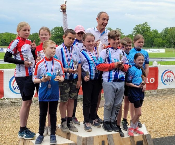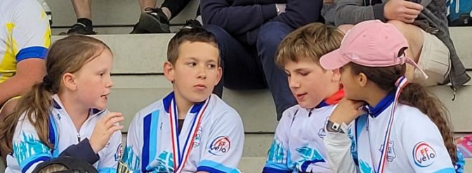 En fin d’après-midi, c’est la remise des récompenses. Comme les jeunes piaffaient quelque peu, je les ai emmenés faire un tour de vtt VTT Vélo Tout Terrain dans la forêt proche avec l’aide de Henri-Georges. Pour les récompenses, les jeunes participants de notre club ont raflé les meilleures places : Imanol 1er garçon et champion de France, Louise 1ère fille et championne de France, Clémence 3ème fille et Eliott qui a déjà participé, 15ème au général. Ces très bonnes places permettent à l’équipe de devenir championne de France. Imanol et Louise sont qualifiés pour faire partie de l’équipe de France (deux filles et deux garçons) au concours européen qu’organise la FIA (sous le nom ETEC ETEC European Traffic Education Contest. En français, c’est le CEER ou Concours Européen d’Éducation Routière. ) à Bar au Montenegro.