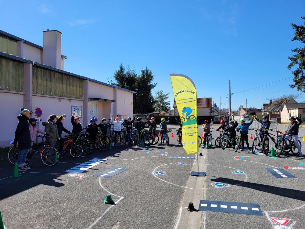 Comme tous les mardis depuis le début mars, aujourd’hui c’est SRAV SRAV Savoir Rouler A Vélo (opération inter-ministérielle) le matin avec la classe des CM1 CM1 cours moyen 1èere année (4ème année d’école élémentaire) de Nouan et l’après-midi avec la classe de CM2 CM2 cours moyen 2ème année (5ème année d’école élémentaire) toujours de Nouan. Les écoliers ont quasiment tous faits de sérieux progrès. Même les jeunes du club se sont pris au jeu et ont amélioré leurs compétences. Devant leurs camarades, Imanol et Gaby se sont particulièrement appliqués.