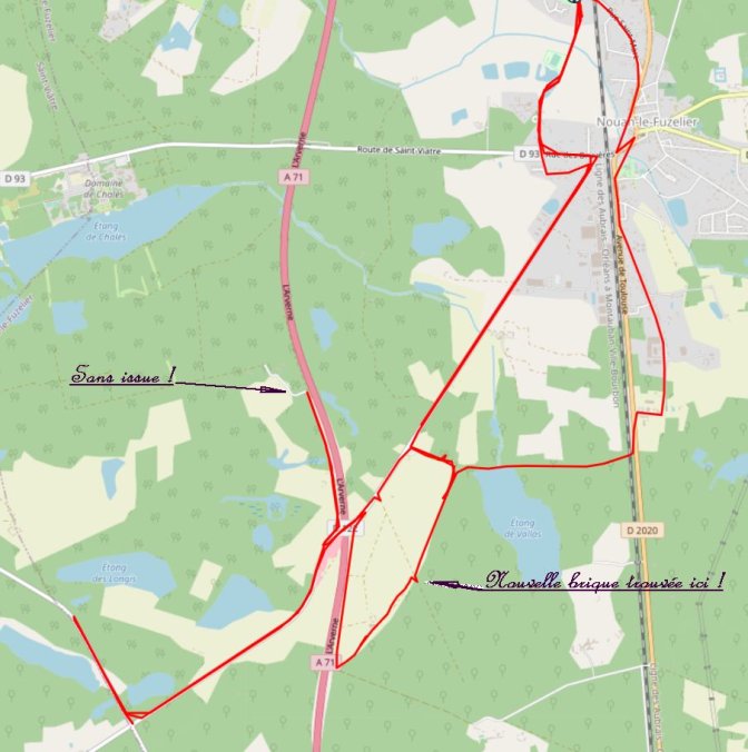 Je suis encore fatigué ce matin. Je ne vais donc pas faire la traditionnelle sortie des vététistes. A la place, je vais "démonter" le traçage des zones de pilotage parce qu’il n’est pas question de laisser traîner de la "rubalise" dans la forêt solognote.