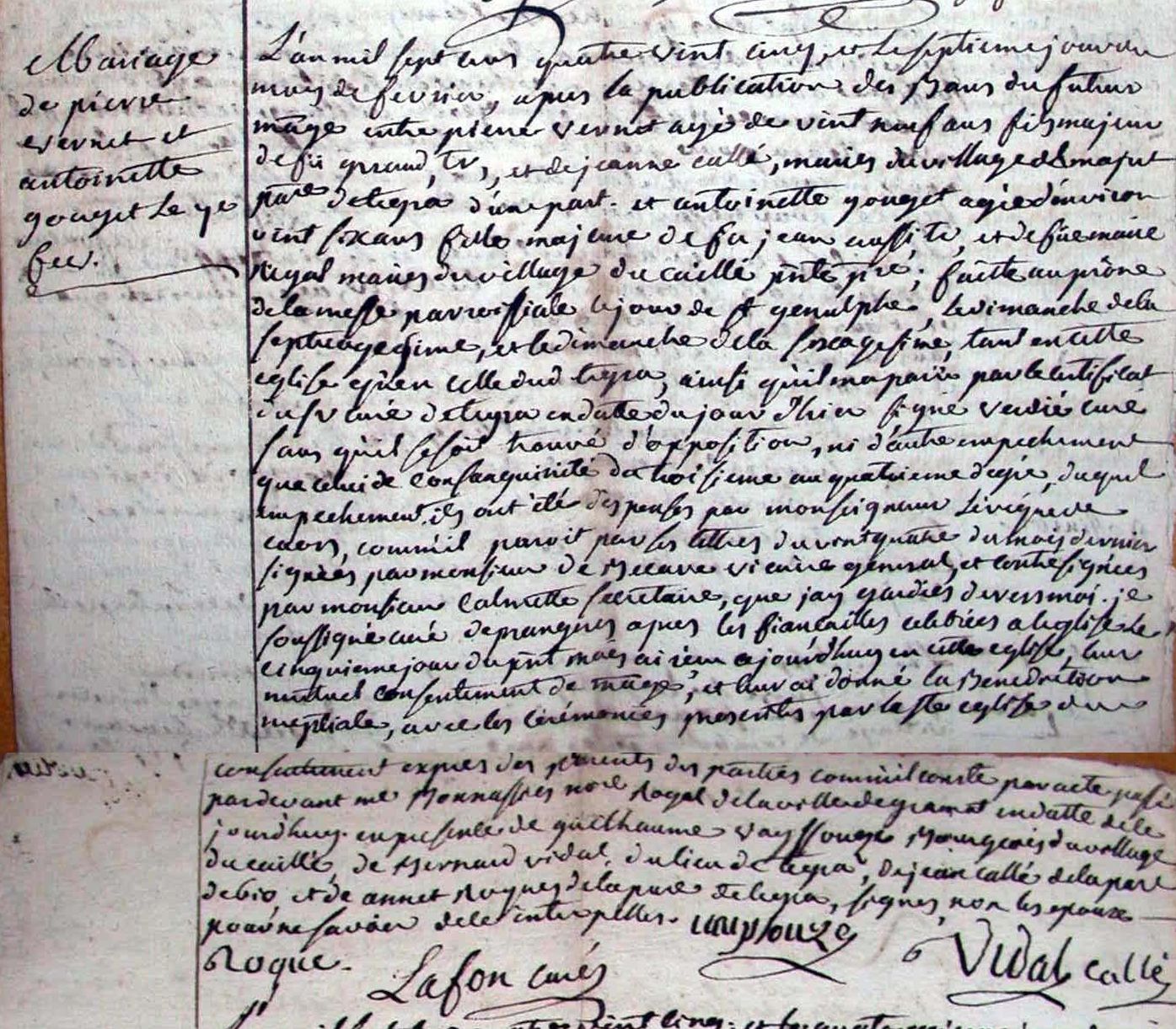 Antoinette, quelquefois appelée (peut-être) Toinette, a une sœur prénommée... Toinette. Toinette aurait épousé Pierre VERNET le 7 février 1785 et Antoinette se serait mariée après 1762 avec Pierre VERNET. Doute. Très fort doute. Donc, attention, épine généalogique ! Je ne sais pas ce que mes recherches vont révéler mais je pressens déjà qu’il y a de la fusion dans l’air : Pierre VERNET, l’époux d’Antoinette et Pierre VERNET l’époux de Toinette sont probablement la même personne même si une homonymie reste encore possible.