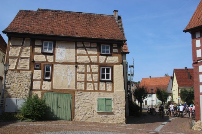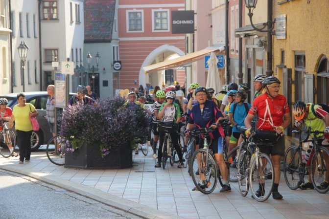Lors d’un circuit en boucle (270°) pour pouvoir traverser le Danube sur un pont en toute sécurité, deux cyclos (dont le serre-file) disparaissent de la vue du groupe. Ils ont eu besoin de queslques minutes supplémentaires, et donc pris du retard, et omettre l’un des trois virages à gauche. Georges, le moniteur organisateur du séjour est donc parti à leur recherche. Il a donc confié à l’un des propriétaires d’une des valises bleues, la charge du groupe (au vu de ses qualifications). Il faut dire qu’il suffit de suivre la trace GPS GPS Global Positioning System (en français : "système de positionnement mondial") fournie et de s’arrêter à Günzburg, dans quelques kilomètres, pour visiter le village. Oui, mais voilà, il y a les impondérables et le groupe se heurte à une route totalement infranchissable (complètement barrée et inaccessible même à vélo). Un détour ou plutôt un contournement s’impose, contournement qui, grâce au GPS GPS Global Positioning System (en français : "système de positionnement mondial") , ne pose pas trop de problèmes. Les "retardataires" nous retrouvent lors de cette "variante".