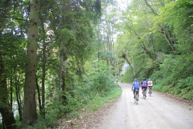 Nous démarrons au cœur de la Forêt-Noire à près de 700m d’altitude à la source officielle du Danube. Cette partie du Danube parcours de magnifiques paysages. Encore petite rivière, le Danube forme des courbes douces. A Geisingen, la vallée se rétrécie et les méandres deviennent plus remarquables. Le Danube contourne ensuite le Jura Souabe par le sud et passe devant nombreuses ruines, châteaux et autres abbayes. Le parcours est essentiellement plat et majoritairement bitumé sauf dans la partie étroite de la vallée où il faudra compter sur quelques courtes grimpettes et de la piste.